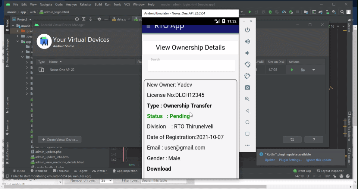 RTO Management System – License, LLR, Owner Ship Transfer based Android Application